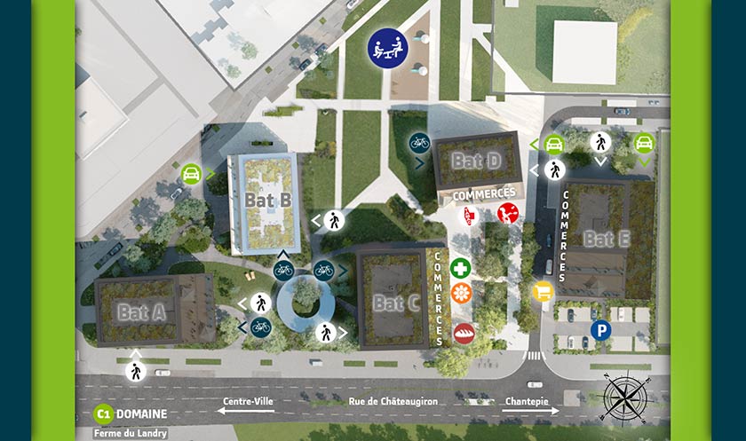 Le projet s’articulera autour d’un espace vert public. Du studio au 5 pièces, nous vous proposons des appartements neufs sûrs et agréables à vivre aux prestations et matériaux de qualité. Chaque logement bénéficie d’au moins un stationnement privatif en sous-sol. Certains bénéficient d’un cellier. Profitez de la cuisine clé en main de Bouygues Immobilier, en option. Le + du projet sont les espaces extérieurs, qu'il s'agisse d'un balcon ou d'une terrasse pouvant atteindre 106 m² ! La résidence dispose d’un emplacement optimal : supérette, pharmacie, services et restauration se trouvent au pied de la résidence tout comme l’arrêt de bus C1 « Domaine » desservant le cœur de ville en 15 minutes. Le Parc du Landry, se trouvent juste en face de la...