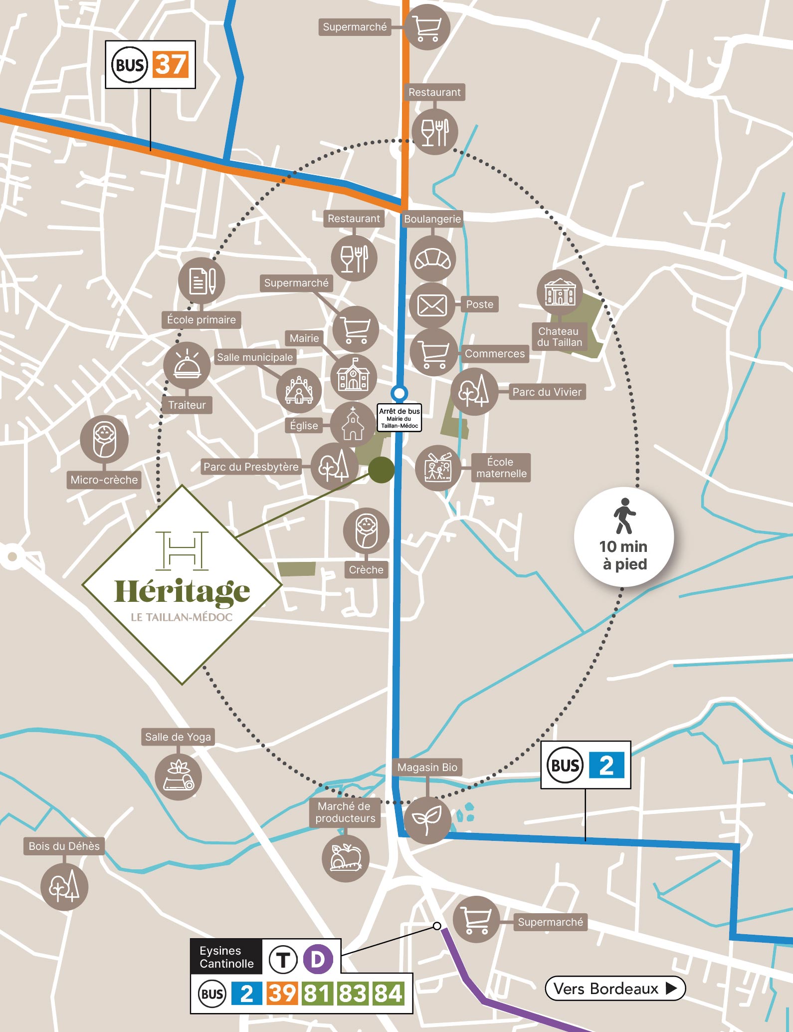 [EN TRAVAUX] En plein centre du Taillan-Médoc, à 20 min à pied du tramway D, 14 logements neufs en accession libre, du 2 au 4 pièces, et un local d’activité de 79.7m² à 219.000€TTC, à proximité immédiate de l'église Saint-Hilaire et du Parc du Presbytère. Chaque logement bénéficie de belles expositions et d'espaces extérieurs privatifs : jardins, terrasses, balcons ou encore loggias jusqu'à 77 m². Des places de stationnement couvertes ou en extérieur engazonné sont incluses et la résidence HERITAGE dispose d'un local à vélos pour favoriser les mobilités douces. N'hésitez pas à nous contacter pour en savoir plus. Les plans des logements sont accessibles sur notre site Internet. Les informations sur les risques auxquels ce bien est exposé so...