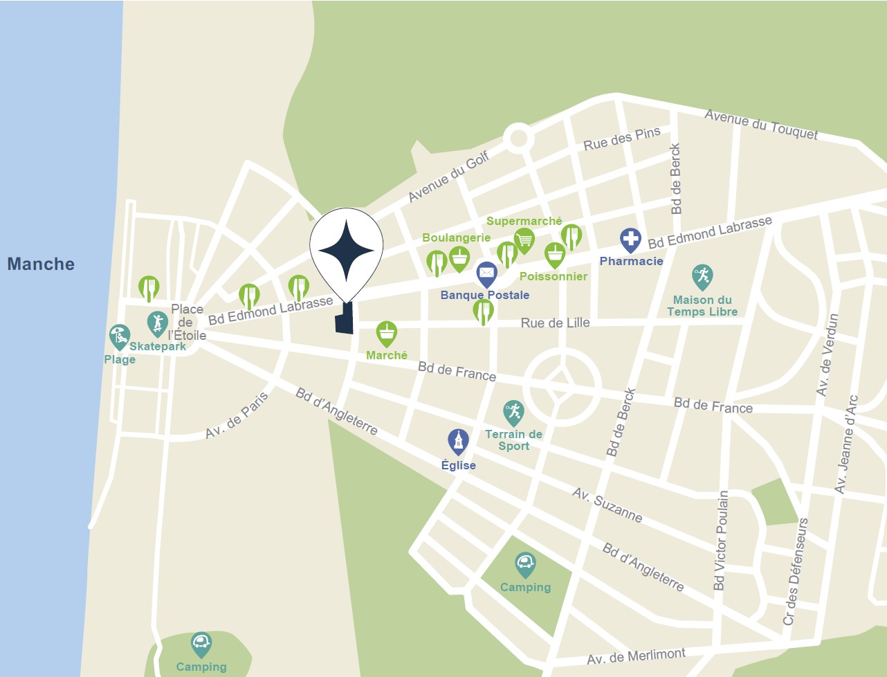 DEMARRAGE DES TRAVAUX à STELLA-PLAGE ! Achetez votre appartement du studio au 3 pièces. Pour les investisseurs, profitez du dispositif LMNP pour louer aux portes du Touquet-Paris-Plage ! A seulement 600 m. de la plage, déployée face à la place du marché et tout proche de l’animation des commerces du boulevard Labrasse, notre future résidence vous propose des appartements neufs, du studio au 5 pièces. Considérée comme « la petite sœur du Touquet », la commune de Cucq, dans le département du Pas-de-Calais, est située à seulement 7 km au sud du Touquet-Paris-Plage. Aux amoureux de la mer et de la nature, elle propose un cadre de vie de qualité, aux paysages préservés : dunes majestueuses, forêts verdoyantes et plages de sable fin....