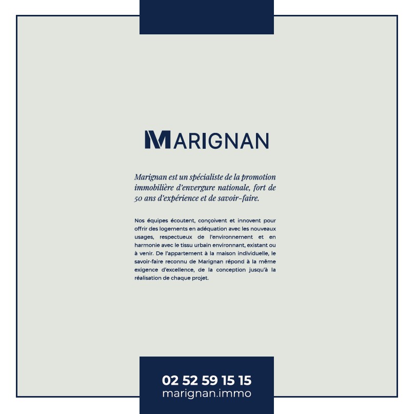 Marignan est un spécialiste de la promotion immobilière d’envergure nationale fort de 50 ans d’expérience et de savoir-faire. À travers notre réseau de 13 agences, Marignan est implanté dans toutes les grandes métropoles régionales. Cet ancrage local historique confère à nos équipes une compréhension fine des enjeux des territoires, des besoins des collectivités et des attentes de nos clients. Grand nom de la promotion immobilière, Marignan offre une gamme de produits et services en constante évolution et imagine des espaces de vie toujours plus innovants, désirables et durables. Notre cœur de métier est l’habitat, qu’il soit collectif ou individuel. Notre ambition est d’offrir un cadre de vie qui réponde aux besoins spécifiques de ceux qui y habitent et qui s’adapte aux usages évolutifs du logement. Nous ajoutons à ce savoir-faire historique l’immobilier d’entreprise pour penser et réaliser des espaces en adéquation avec les nouveaux modes de travail.