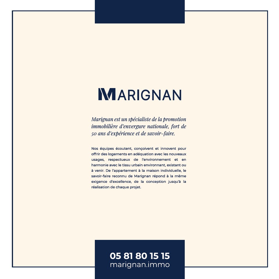 Marignan est un spécialiste de la promotion immobilière d’envergure nationale fort de 50 ans d’expérience et de savoir-faire. À travers notre réseau de 13 agences, Marignan est implanté dans toutes les grandes métropoles régionales. Cet ancrage local historique confère à nos équipes une compréhension fine des enjeux des territoires, des besoins des collectivités et des attentes de nos clients. Grand nom de la promotion immobilière, Marignan offre une gamme de produits et services en constante évolution et imagine des espaces de vie toujours plus innovants, désirables et durables. Notre cœur de métier est l’habitat, qu’il soit collectif ou individuel. Notre ambition est d’offrir un cadre de vie qui réponde aux besoins spécifiques de ceux qui y habitent et qui s’adapte aux usages évolutifs du logement. Nous ajoutons à ce savoir-faire historique l’immobilier d’entreprise pour penser et réaliser des espaces en adéquation avec les nouveaux modes de travail.