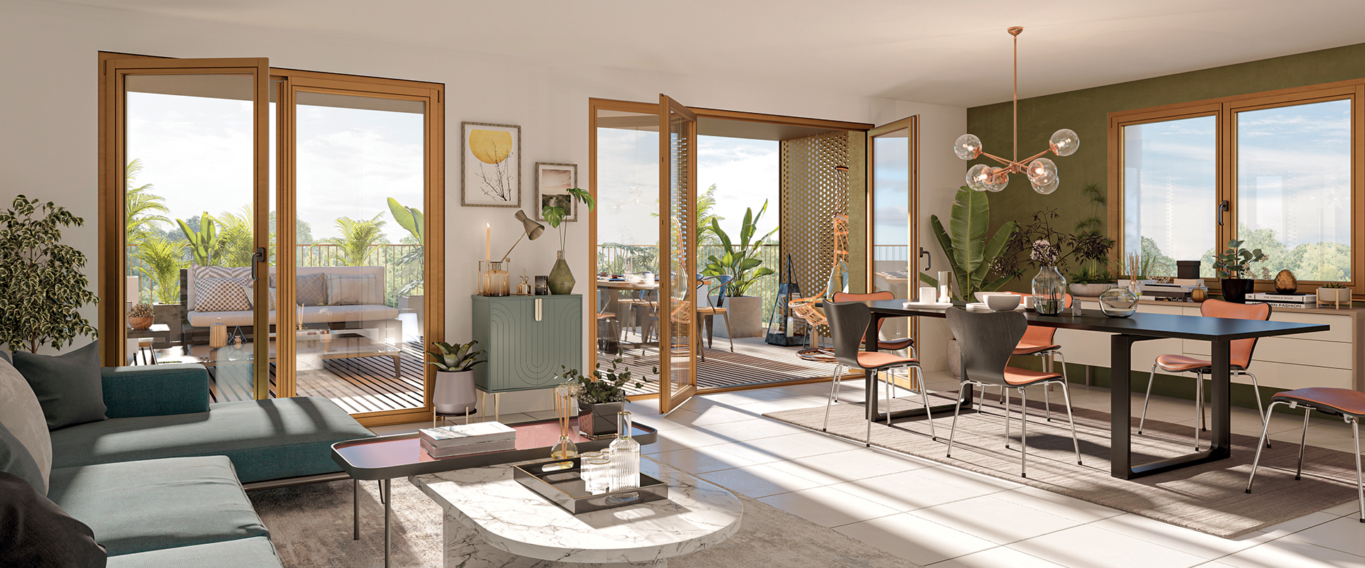 Découvrez la résidence Le Lotus à Fleury-sur-Orne (14). Appartements neufs du studio au T5 duplex. Ecoquartier. Tramway T3.
